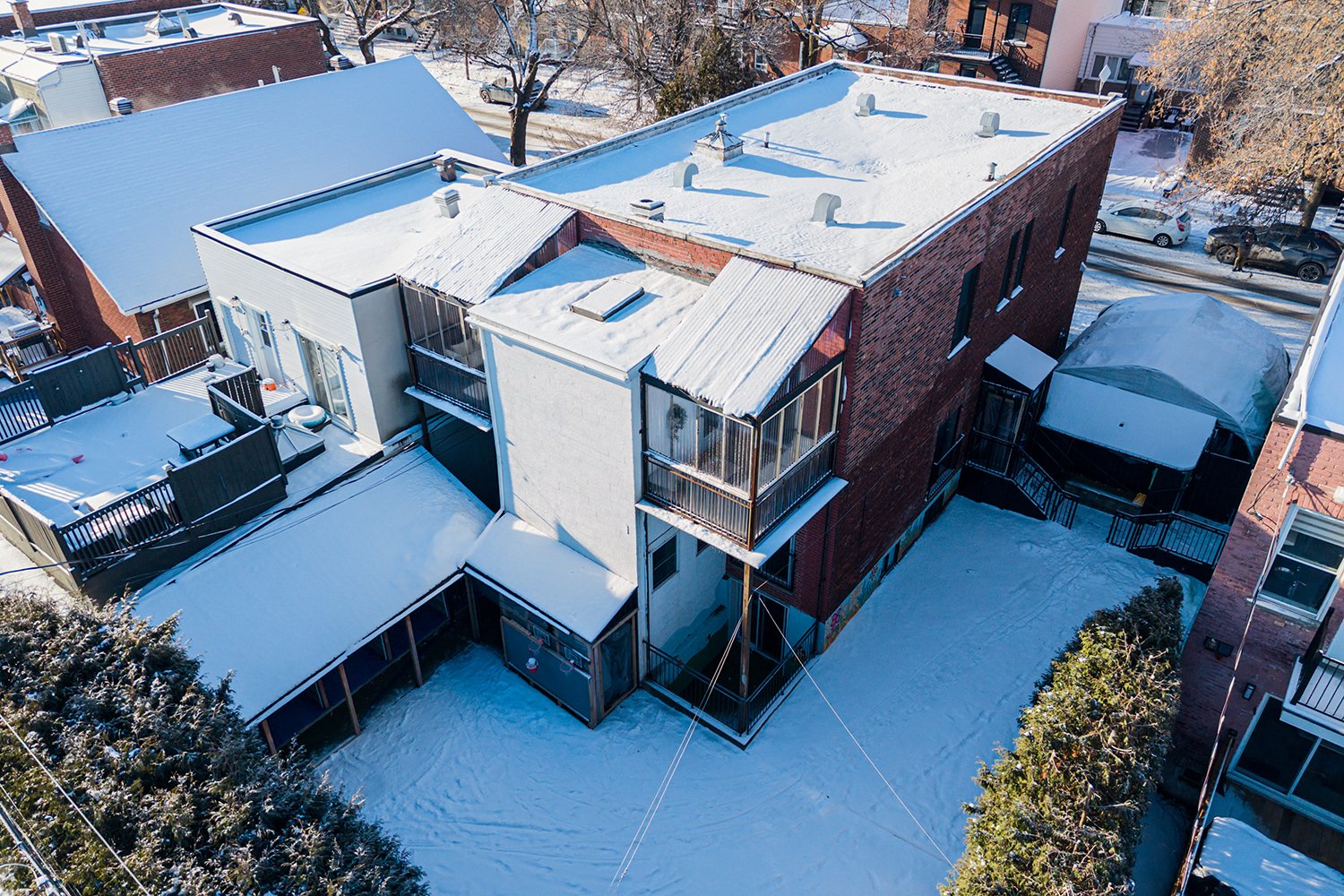 Welcome to this triplex in the heart of Le Sud-Ouest, offering strong income potential and opportunities for future value creation. The ground floor at 6040 Dumas is being converted into two spacious 3½ units, while the second floor at 6038 Dumas features three fully equipped and furnished studios. Two parking spaces are located at the rear with alley (ruelle verte) access, and the lot may allow for additional parking. The property consists of two separate lots, with a combined total area of 4,613.68 sq. ft. Ideally situated just minutes from public transit, major highways, schools, shops, cafés, restaurants, and parks.